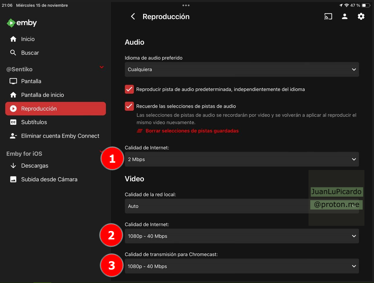 3- Opcional si usas Chromecast: Calidad de transmisión para Chromecast: 1080 - 40 Mbps.
