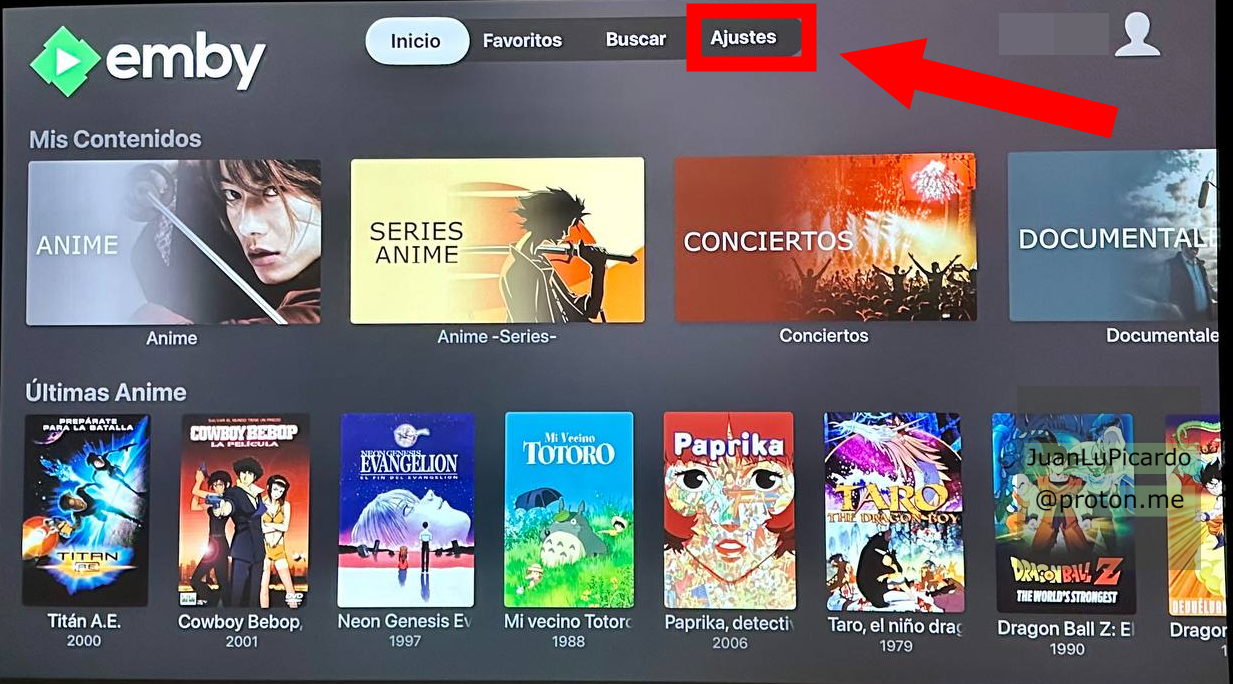Una vez iniciada la sesión en tu Apple TV, nos dirigimos a “Ajustes” en el deslizante superior: