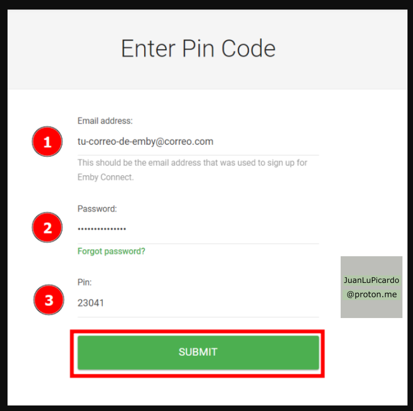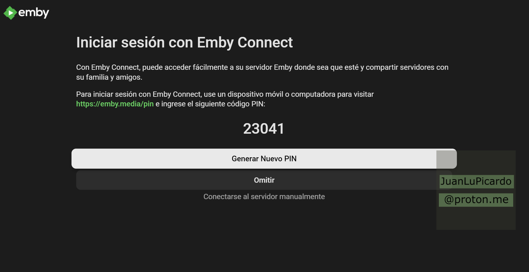 - Correo electrónico de nuestra cuenta Emby.