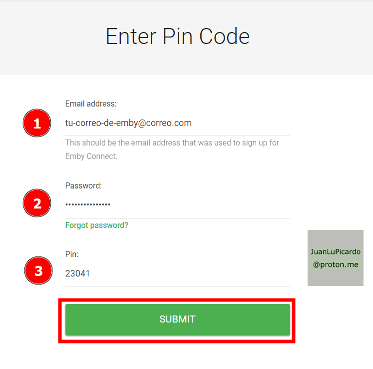 - Correo electrónico de nuestra cuenta Emby.