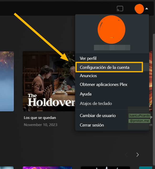Entramos en app.plex.tv y accedemos a nuestra cuenta. Acto seguido: